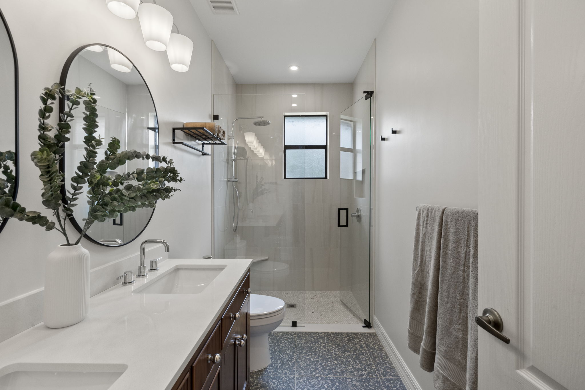 This bathroom remodel blends modern design with everyday practicality. Soft neutral tones, clean lines, and subtle accents make the space feel both stylish and age-appropriate. Thoughtful details—like built-in storage and sleek fixtures—ensure it remains functional and timeless as the teens grow.