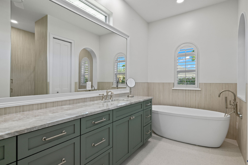 Curated Designs showcases a master bathroom renovation inspired by the tranquility of a spa retreat. This project features calming color palettes, luxurious fixtures, and natural materials to create a peaceful and rejuvenating environment. The result is a master bathroom that serves as a serene escape within the home.